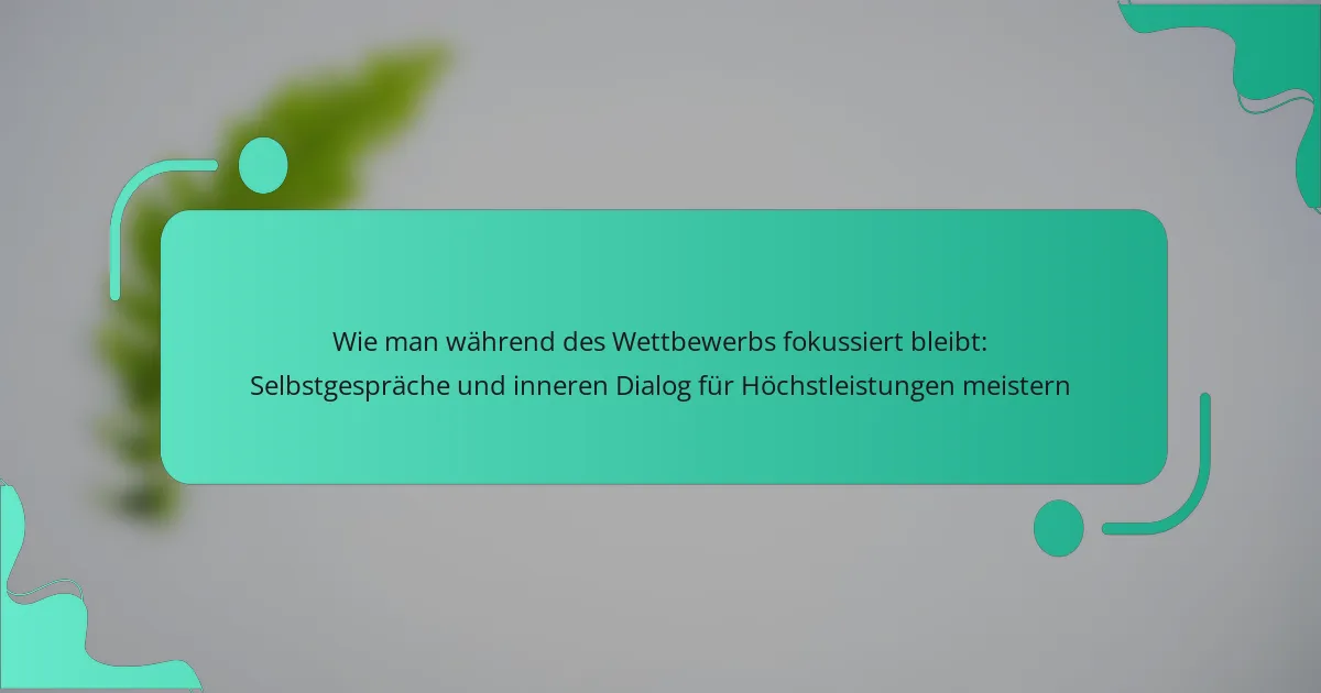 Selbstgespräch verbessert die Konzentration während des Wettbewerbs erheblich, indem es die Aufmerksamkeit lenkt und Emotionen steuert. Positives Selbstgespräch stärkt das Vertrauen und die Motivation, während negatives Selbstgespräch zu Ablenkungen und Angst führen kann. Athleten zu trainieren, um einen konstruktiven inneren Dialog zu entwickeln, kann ihre Leistung unter Druck verbessern. Techniken wie Affirmationen und Visualisierung können das Selbstgespräch effektiv gestalten, sodass Athleten die Konzentration aufrechterhalten und Höchstleistungen erzielen können.